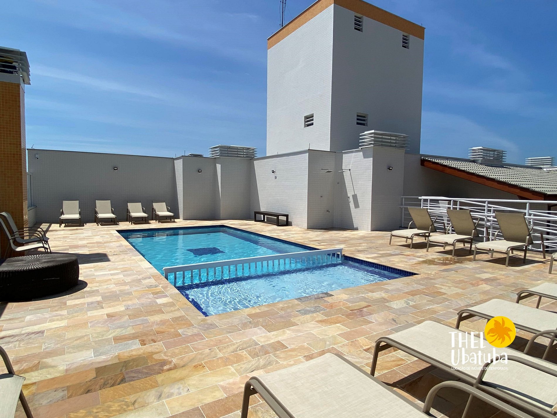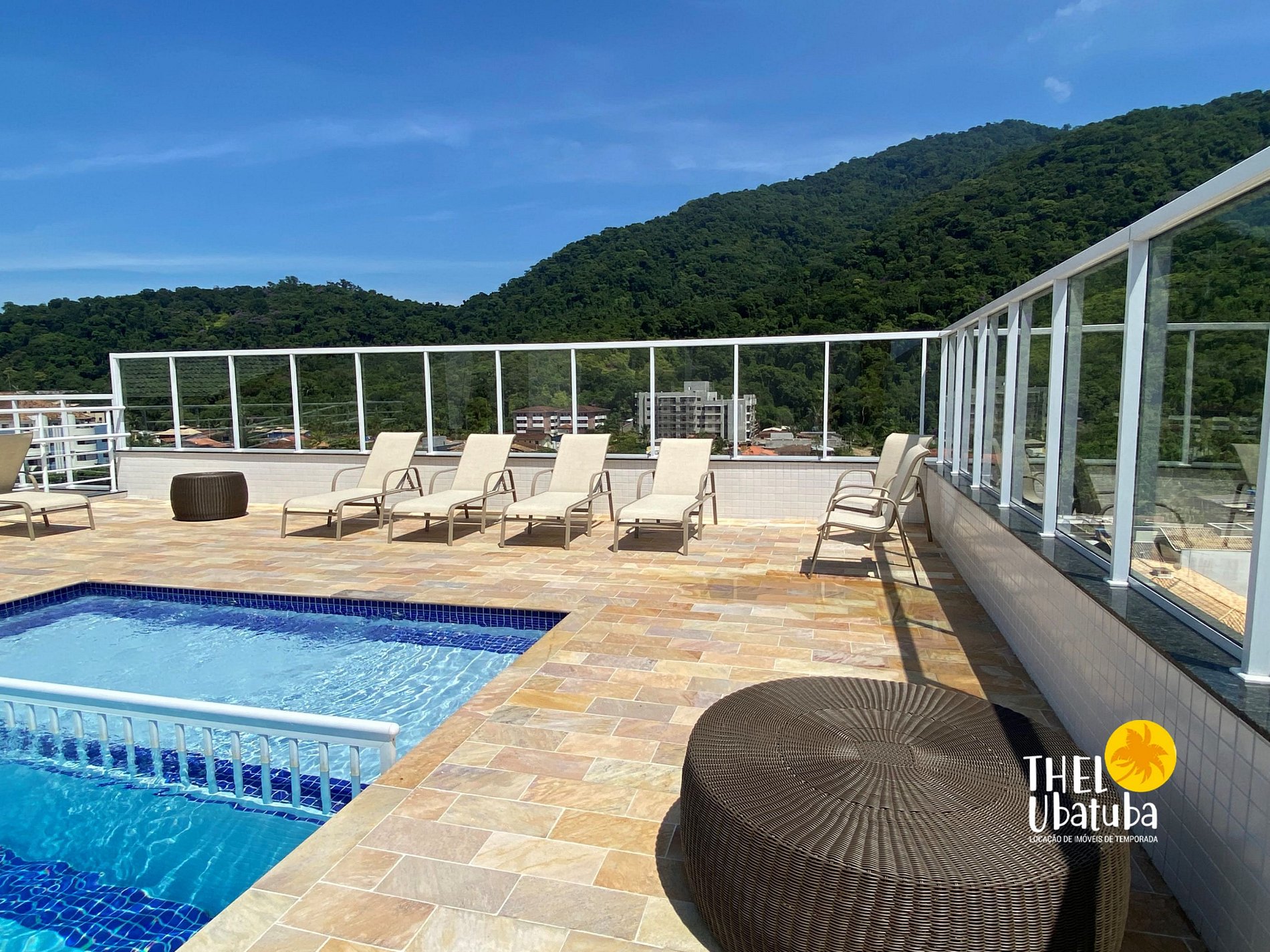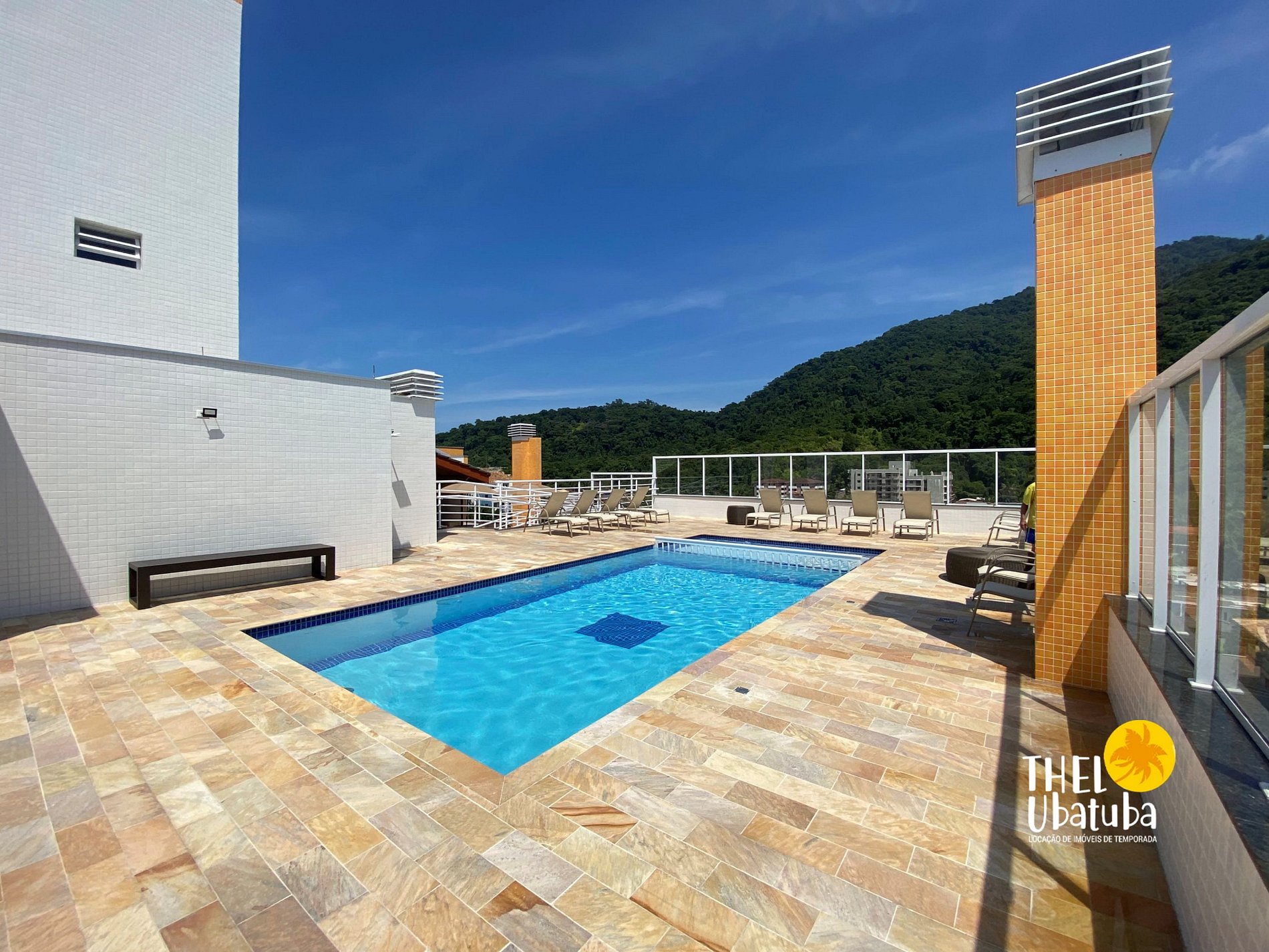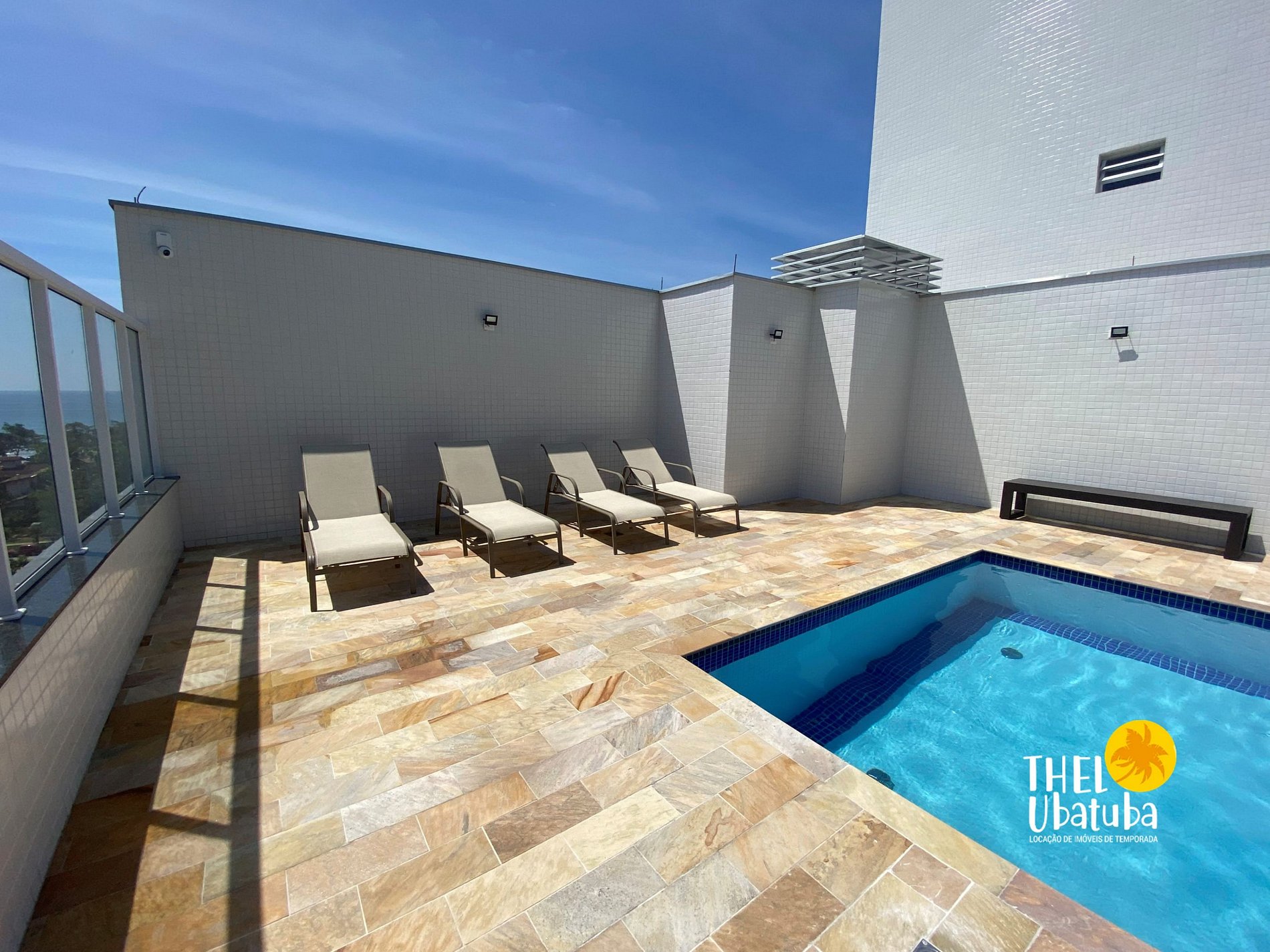 Piscina adulto externa no terraço com vista para Toninhas