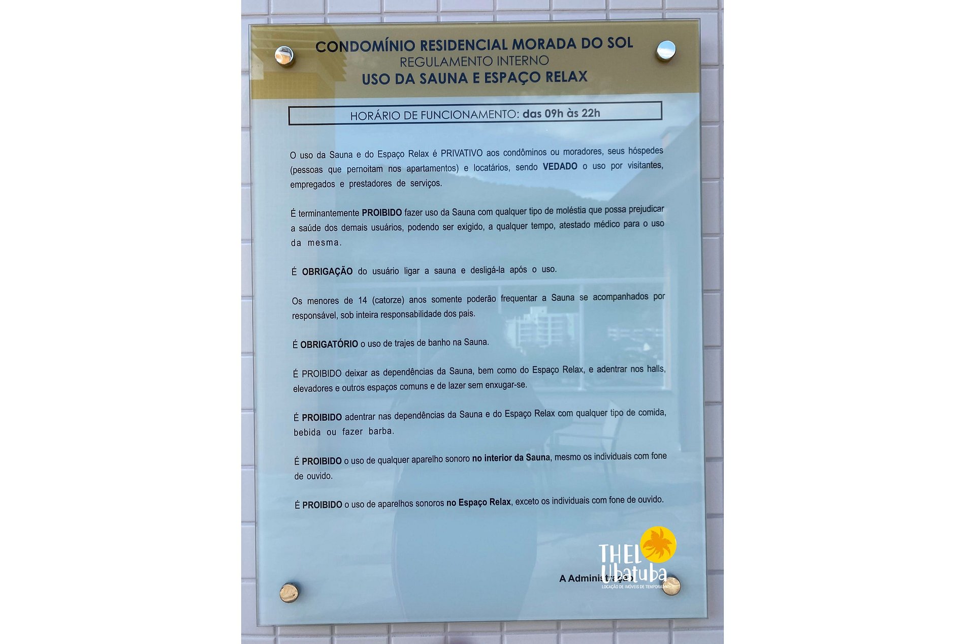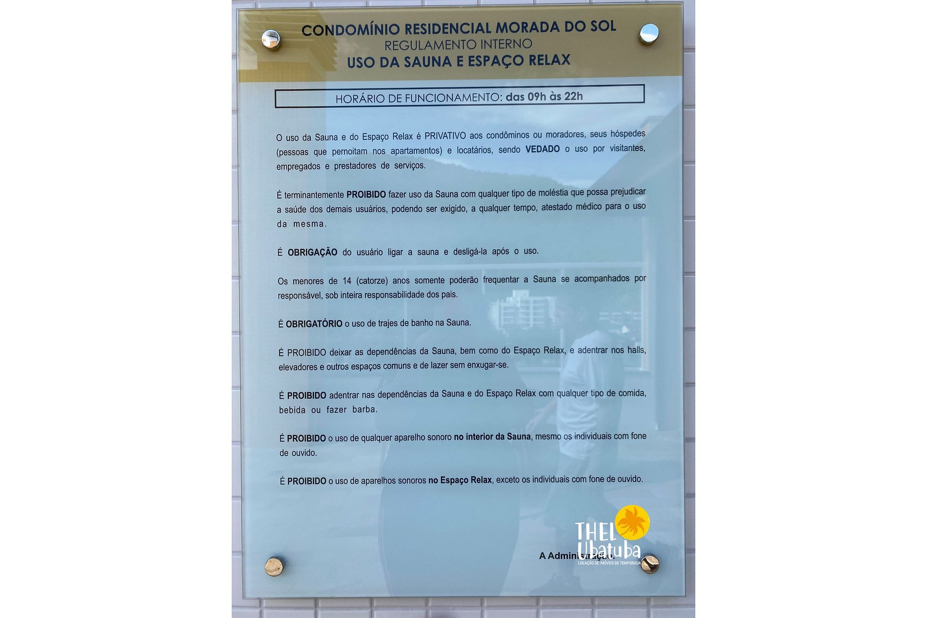 - Guarda de pertences pessoais nas áreas comuns: O condomínio e o locador não se responsabiliza pela guarda de bens pessoais, não dando direto de ressarcimento, de itens perdidos.