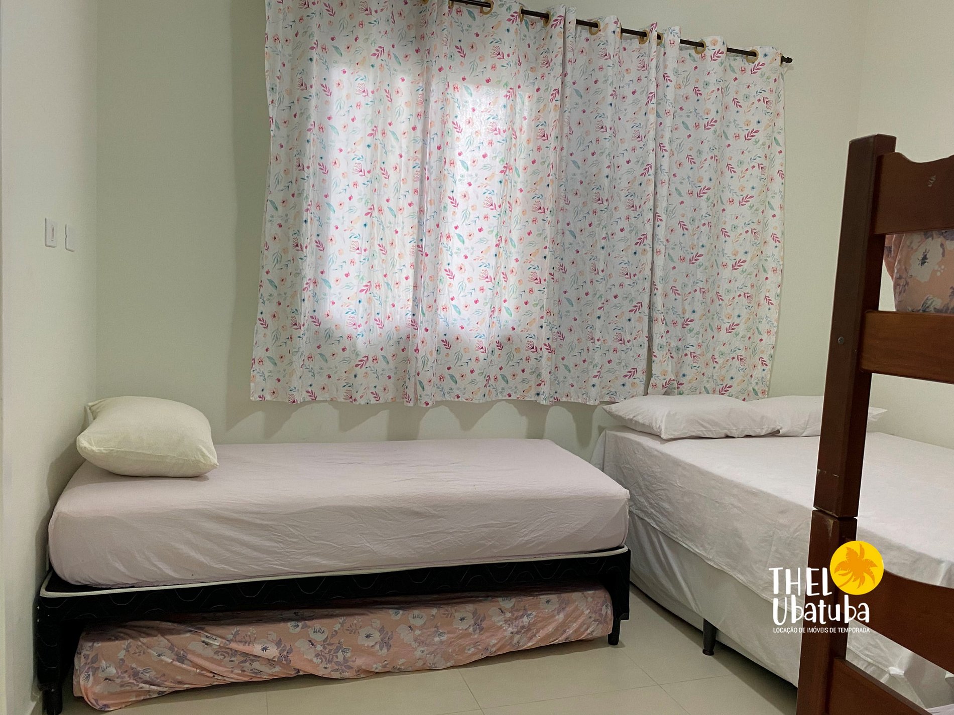 Quarto social: 01 cama de casal + 02 camas de solteiro = 4 pessoas