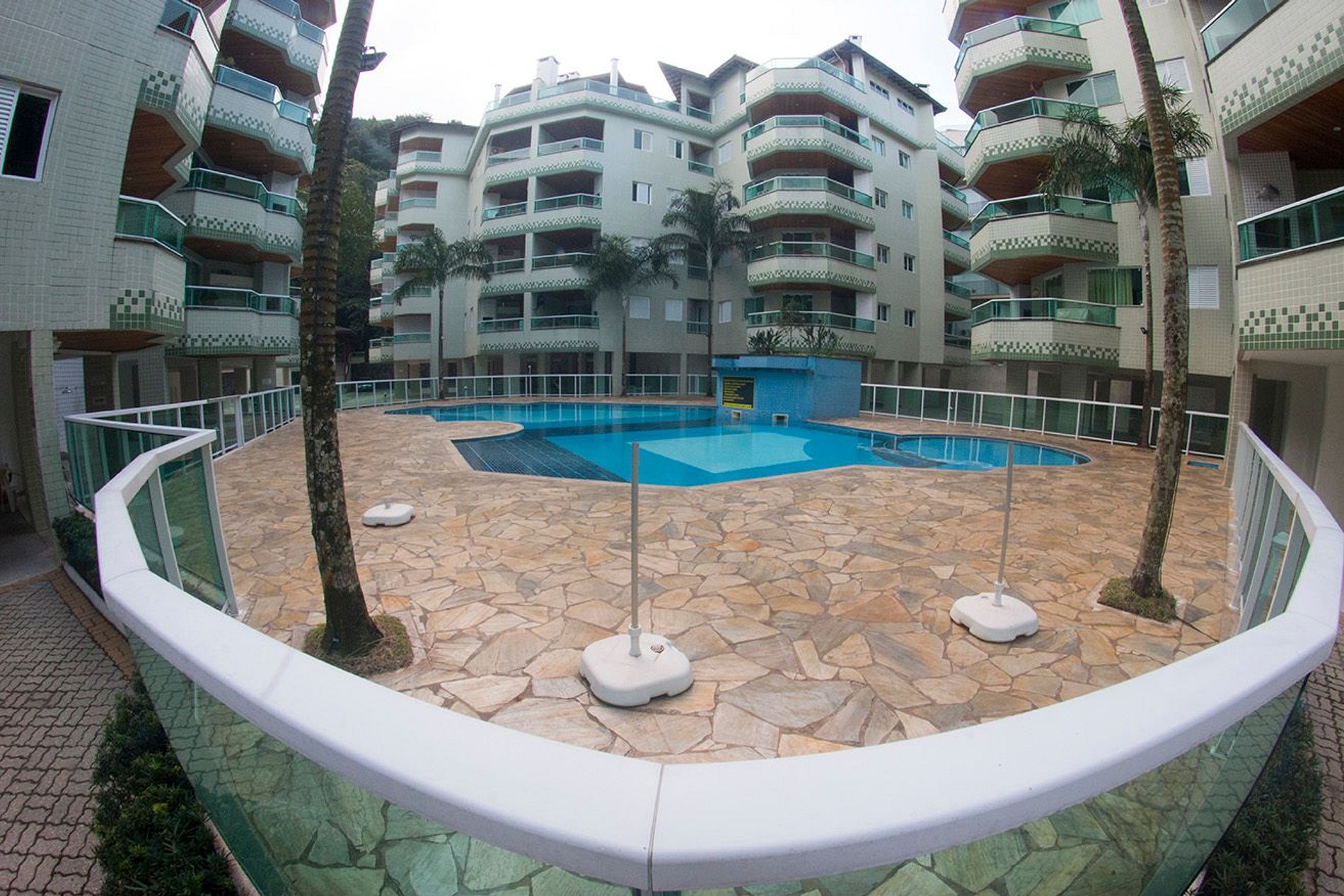 Sacada de frente para área de lazer (piscina)