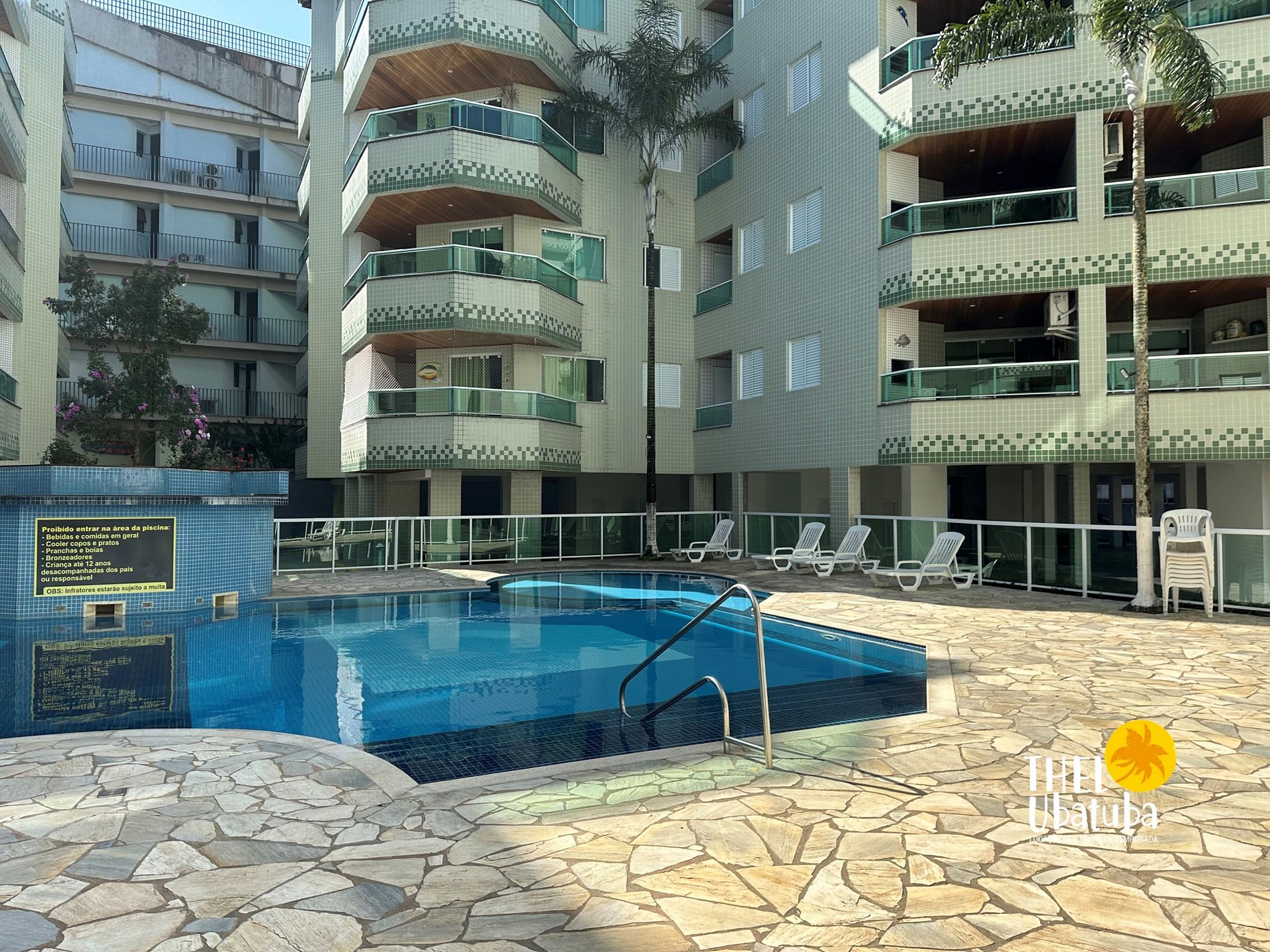 - É permitido o uso da área de lazer (piscina / sala de jogos) de acordo com os horários estabelecidos pelo condomínio;( não levar bebida e nem alimentos na área da piscina)
