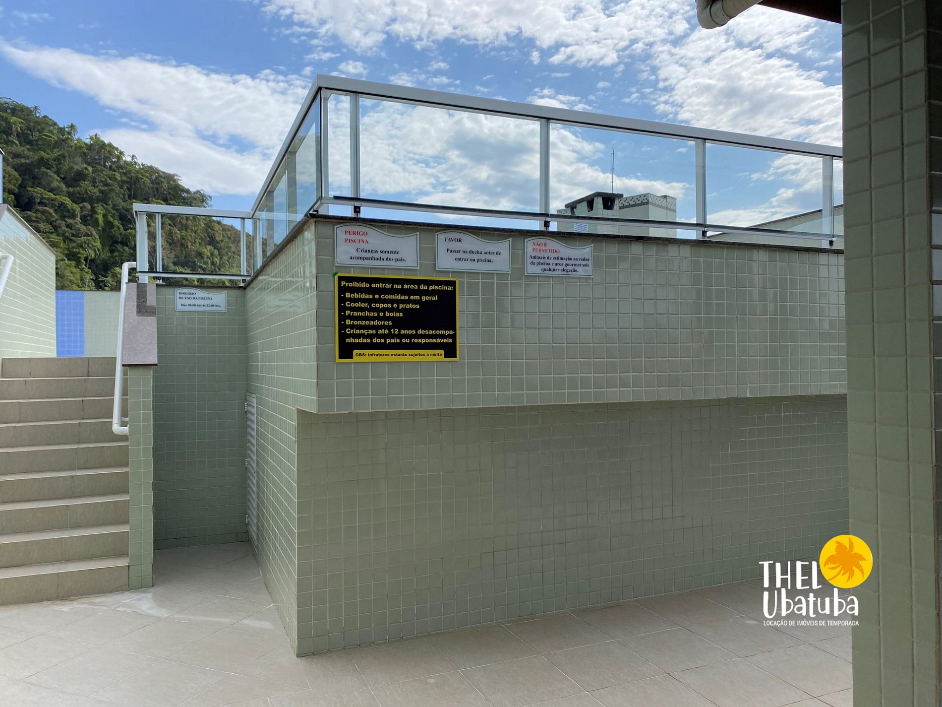 - É permitido o uso da área de lazer (piscina) de acordo com os horários estabelecidos pelo condomínio; respeitar as regras ( não levar bebida e nem alimentos na área da piscina).