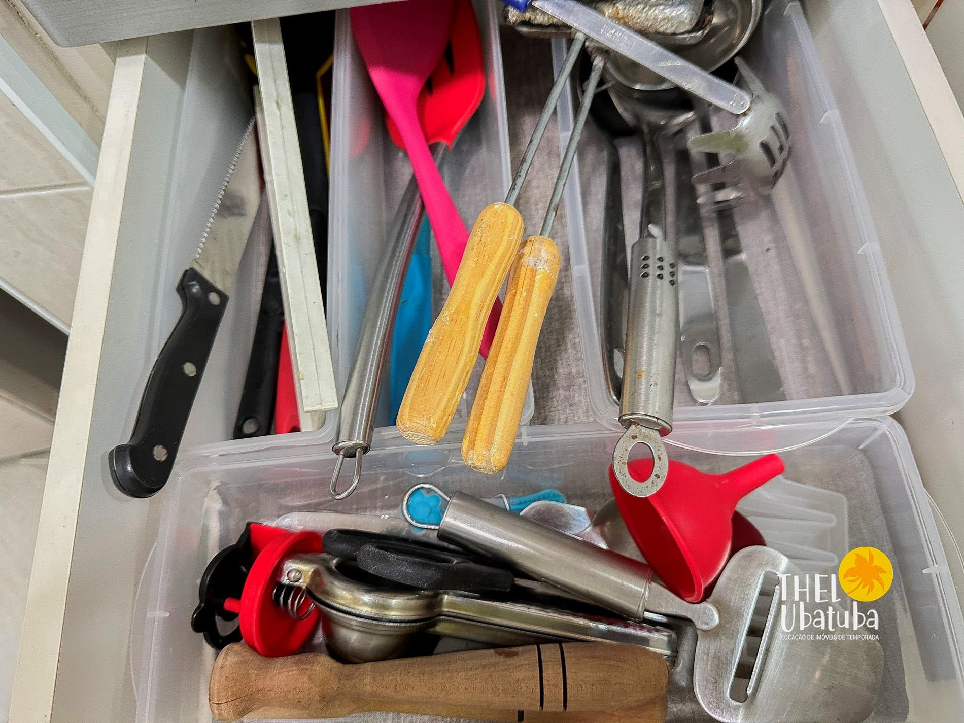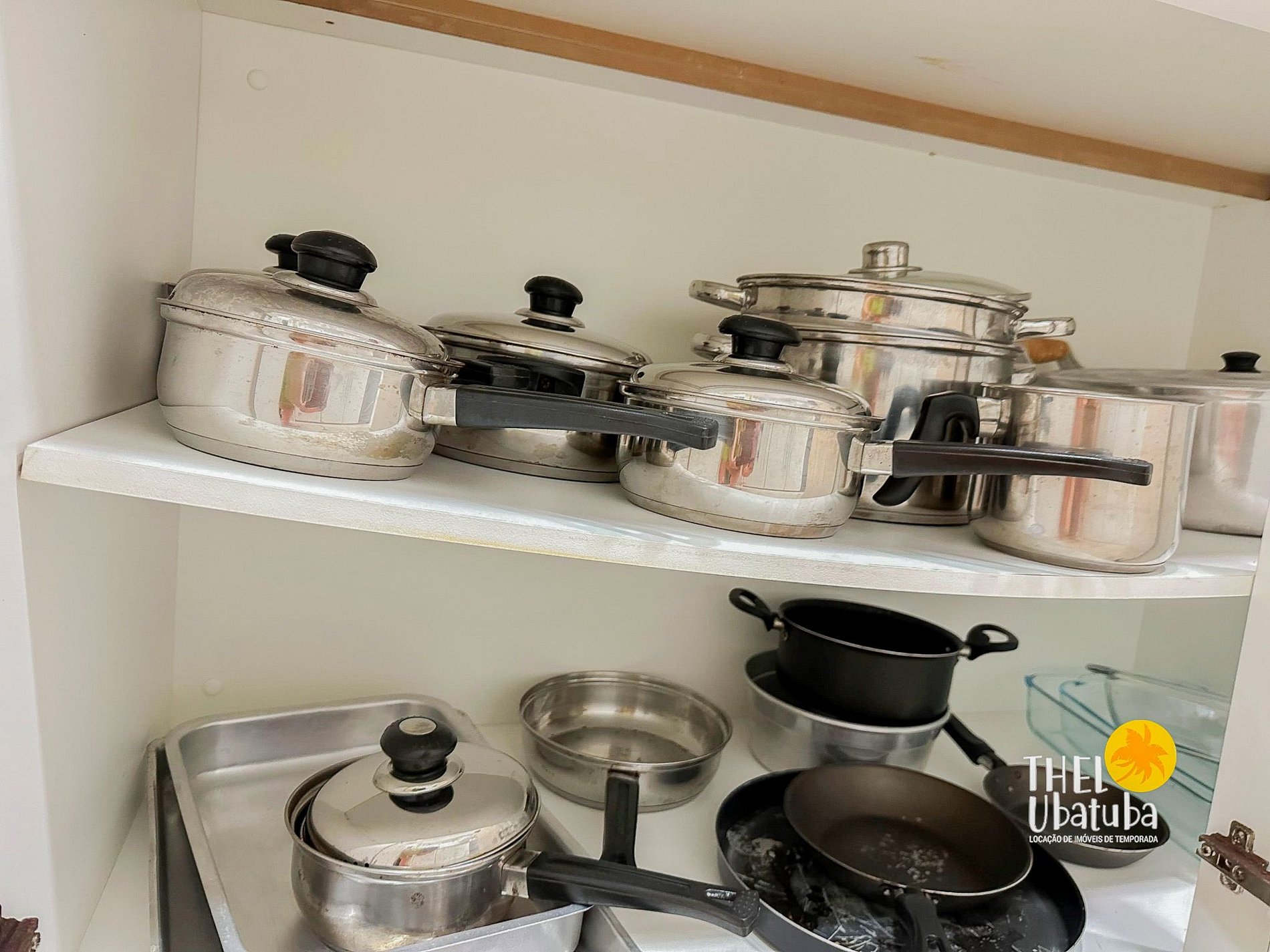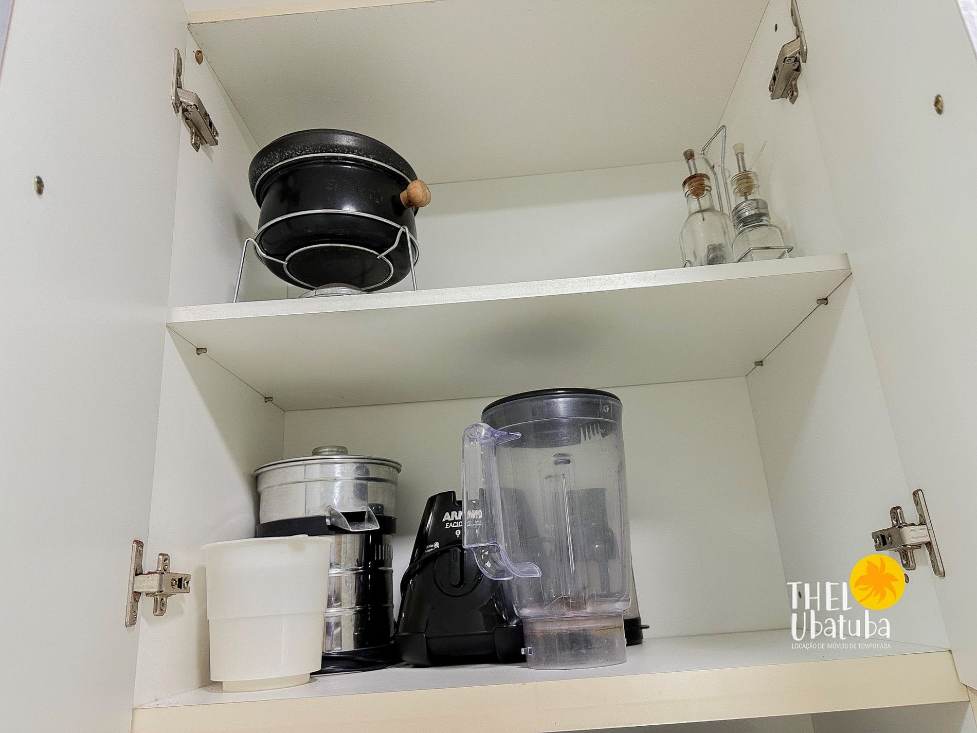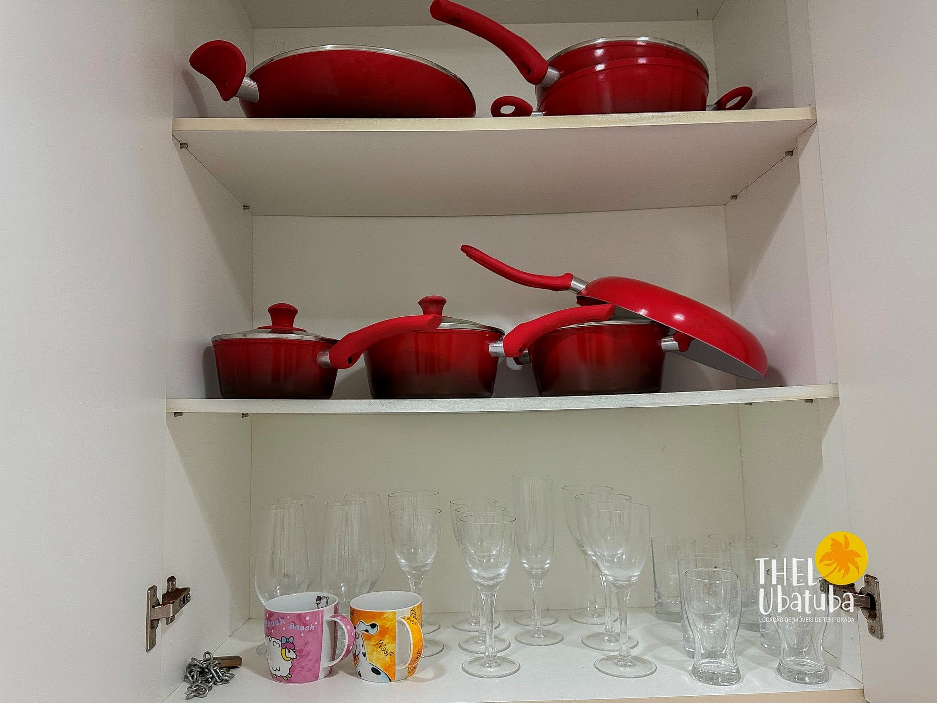 Serviço de cozinha: pratos, talheres, copos, panelas, tábua de carnes, eletro portáteis (liquidificador e sanduicheira), micro-ondas.