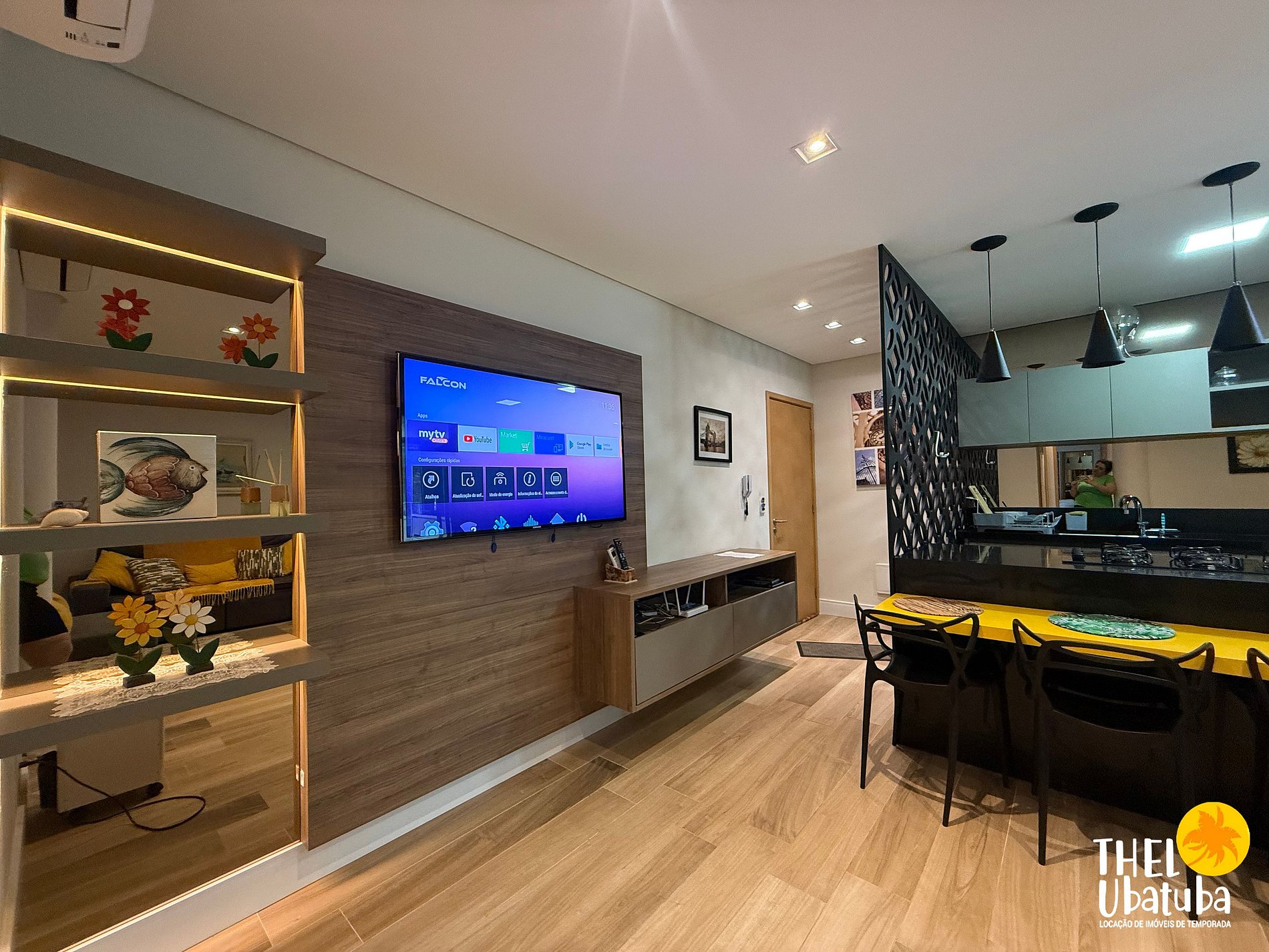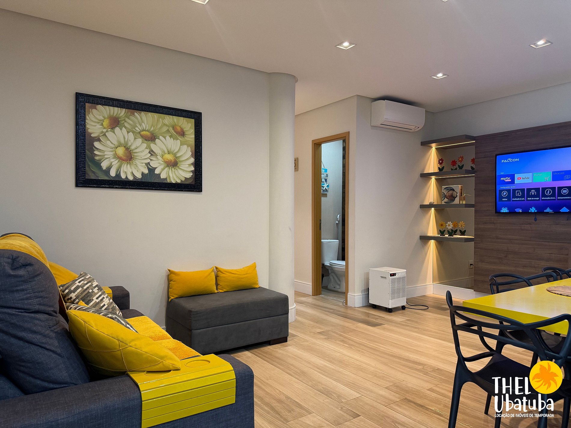 Sala de estar com TV e ar-condicionado