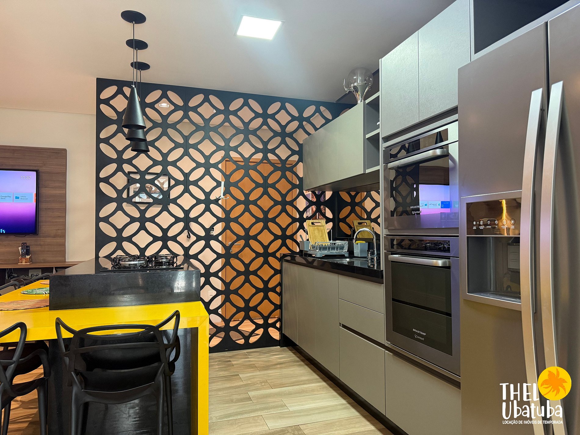 Cozinha completa com utensílios, eletroportáteis e bancada