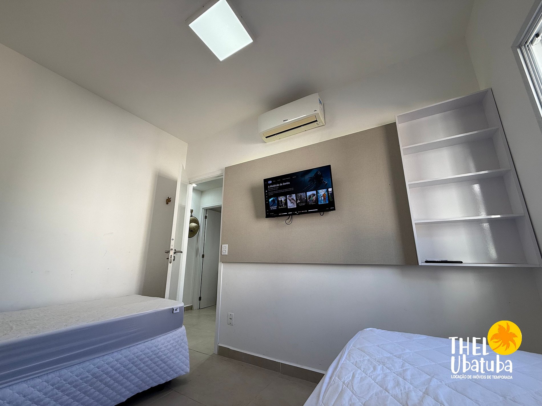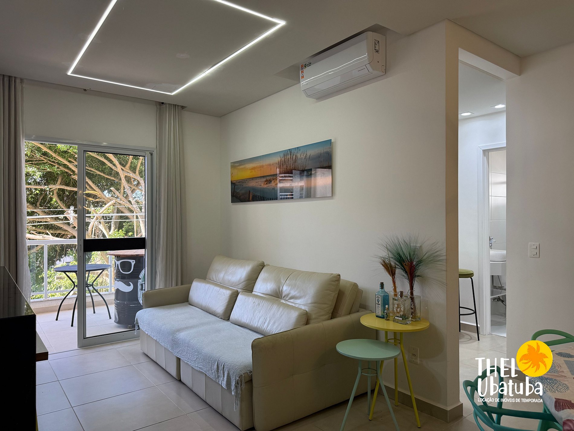 Sala com TV smart e ar condicionado