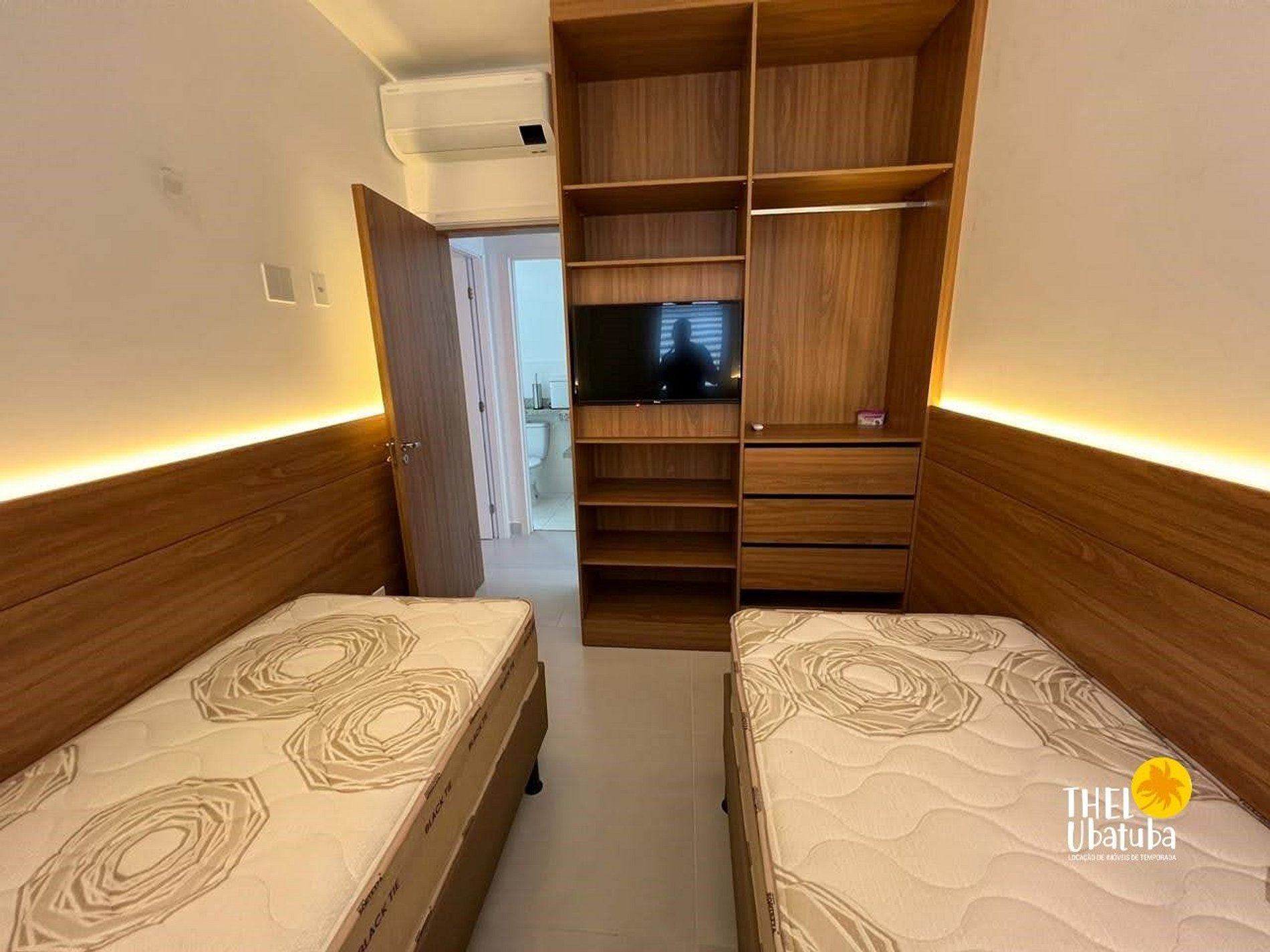 02 dormitórios com ar e TV, tomadas USB